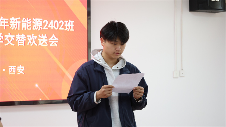 3月25日上午,西安万通汽车学校在会议室隆重举行奇瑞工学交替学生欢送会。校长李登宝、校区主任张见兵、教务处主管李旭东、学生处主管兼主持人万云飞、班主任李小安、带队老师金晓龙及新能源2402班全体学生共同参加了此次活动,为即将奔赴奇瑞汽车开展工学交替实习的学子们送上真挚祝福与殷切嘱托。 欢送会在庄重而温馨的氛围中拉开帷幕。