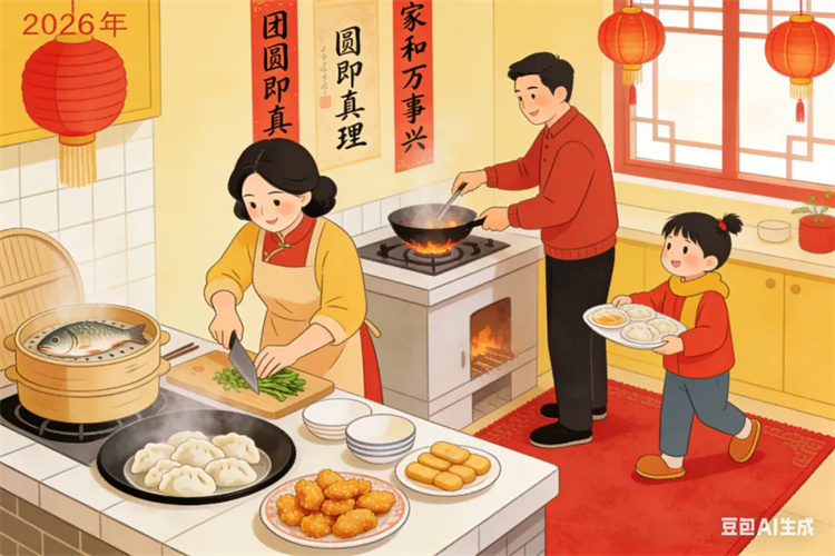 厨房里的哲学 中国家庭的年夜饭,是一场不动声色的哲学实践。 每一道菜都是一句没有说出口的话。鱼是“年年有余”,饺子是“更岁交子”,汤圆是“团团圆圆”。母亲在厨房里的每一个动作,都带着仪式感——切菜的节奏,调味的斟酌,摆盘的讲究。食物在这里超越了饱腹的功能,成为情感的载体,记忆的容器。