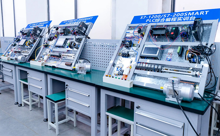 理由三:设备前沿,实操能练到“手熟” 学PLC,“光听不练”等于白学。西安万通专门建了PLC实训中心,里面的设备全是按工厂标准配的:西门子、三菱等主流PLC主机随便用,还有传送带模拟生产线、气动控制实验台以及机器人手臂这些“真家伙”,跟你以后上班接触的设备几乎没差。