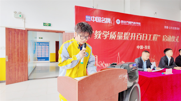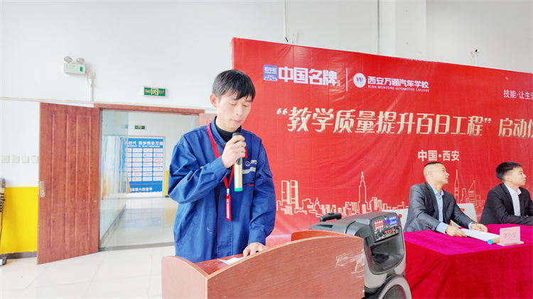 三、领导寄语·擘画未来 西安万通 校区主任张见兵在总结讲话中强调,“百日工程”是学校践行“高质量教学、高品质就业、高水平研发”办学目标的关键行动。他要求全体教师聚焦“三个实干”——在师资成长、专业建设、教学规范上真抓实干;鼓励学生把握“三个机会”——以赛促学、规范养成、就业赋能,真正实现“凭真本事赢尊重,靠硬技能闯未来”。 张主任指出,教学质量是学校的生命线,也是学生未来发展的底气。他希望全体师生以此次工程为契机,将“工匠精神”融入日常,共同打造西安万通汽修教育的新标杆。
