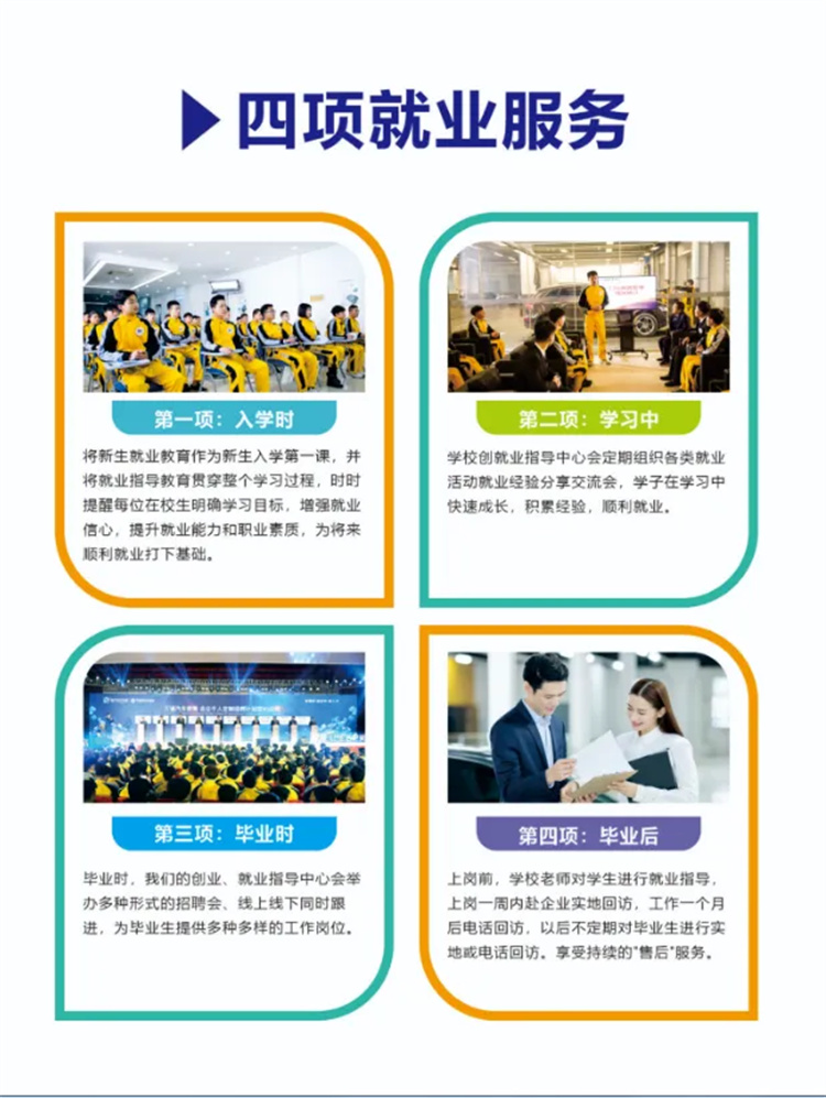 03就业保障 :学技术最终要落地到就业,这一点必须摸清!现场可以查看学校的“合作企业名录”,了解不同专业的就业方向、起薪水平。更重要的是,询问招生老师“是否有专属就业指导老师”,“毕业后是否有多次推荐就业的服务”,确保从学习到就业的全流程都有保障。